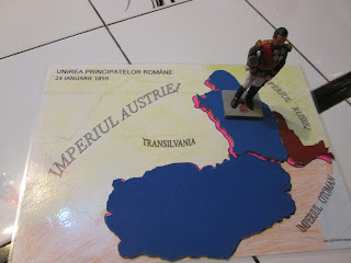Cu ajutorul modelelor din lemn confectionate de noi in atelierul casei am conturat Moldova si Tara Romaneasca, am urmarit cu statueta traseul parcurs de Al. I. Cuza in timpul alegerii sale ca domnitor in cele doua principate romane si drumul sau catre Imperiul Otoman pentru a-l indupleca pe sultan sa accepte unirea.