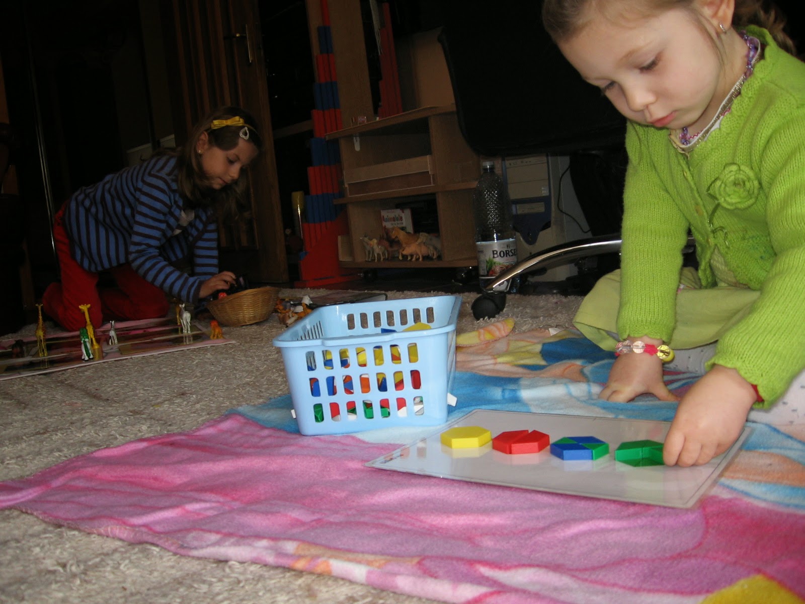 Dupa cateva zile, chiar si in cadrul atelierului Montessori, Dia a si-a ales piesele de tip mozaic si a lucrat cu foarte mare placere, in timp ce prietenele ei s-au concentrat mult asupra cifrelor si a jocului cu animale.