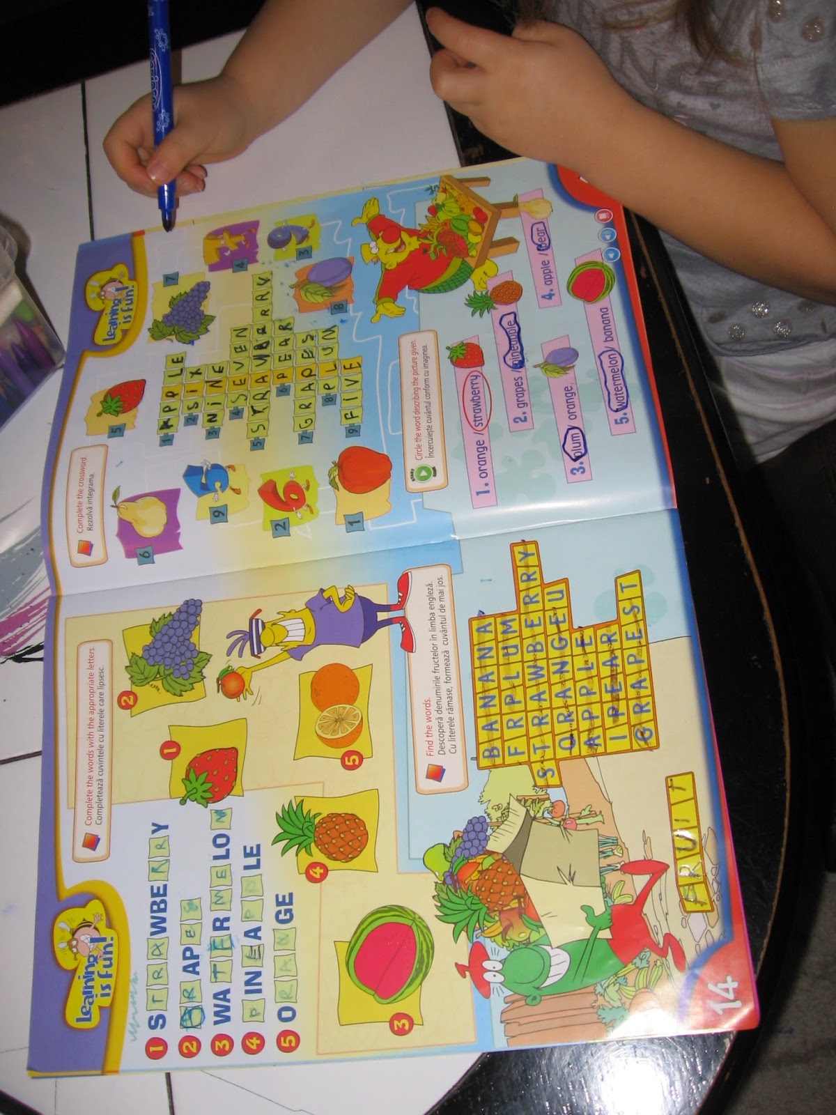 Intamplare sau nu, tocmai aparuse primul numar al colectiei Magic Happy English care initial mi s-a parut destul de greu pentru ea. A fost mai incantata de DVD-urile colectiei decat de revista in sine. Dupa o perioada, a descoperit ca-i face placere sa foloseasca stiloul magic pentru citirea ultimei pagini a revistei. A vrut sa luam si urmatoarele numere tot pentru a pune stiloul magic sa-i citeasca benzile desenate de pe coperti. Apoi a descoperit catecelele din interiorul revistelor... dupa o luna lucram revistele de la prima pagina pana la ultima, folosind stiloul magic, completand spatiile punctate, punand in corespondenta imagini si cuvinte.
