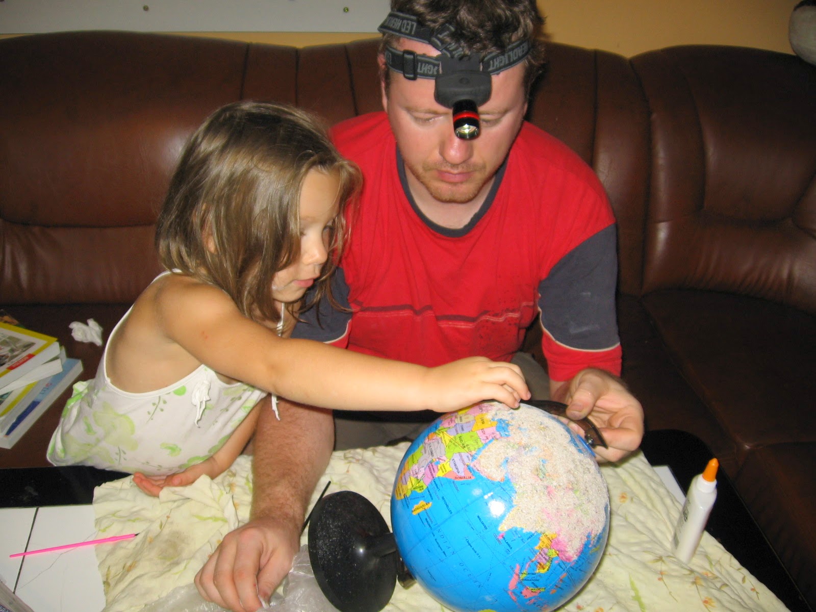 Am gasit un set de excavatie de la D-Toys "Micul paleontolog" pe care i l-am cumparat fara sa fiu prea convinsa ca o sa-i placa. Nu-i prea plac treburile murdare" (la propriu murdare). Pot spune ca a rezistat eroic incercand sa descopere fosilele de dinozaur... si eu, de asemenea, privindu-mi bucataria cum se afunda in nori de praf... Nu-mi imaginam ca un set de excavatie poate sa-mi dea de lucru atatea ore! Am chemat si intariri cand am simtit ca-si pierde interesul- vecini posibil interesati... Nu stiu cum si cand s-a intamplat, dar anumite parti ale scheletului nu s-au mai gasit... Am consolat-o spunandu-i ca nici paleontologii adevarati nu gasesc chiar toate oasele pentru reconstructia scheletului. Tati a luptat eroic si a reusit si puna la un loc toate piesele disponibile sub stricta supraveghere a paleontologului principal. Am obtinut un fel de Stegosaurus cu... trei picioare si jumatate.