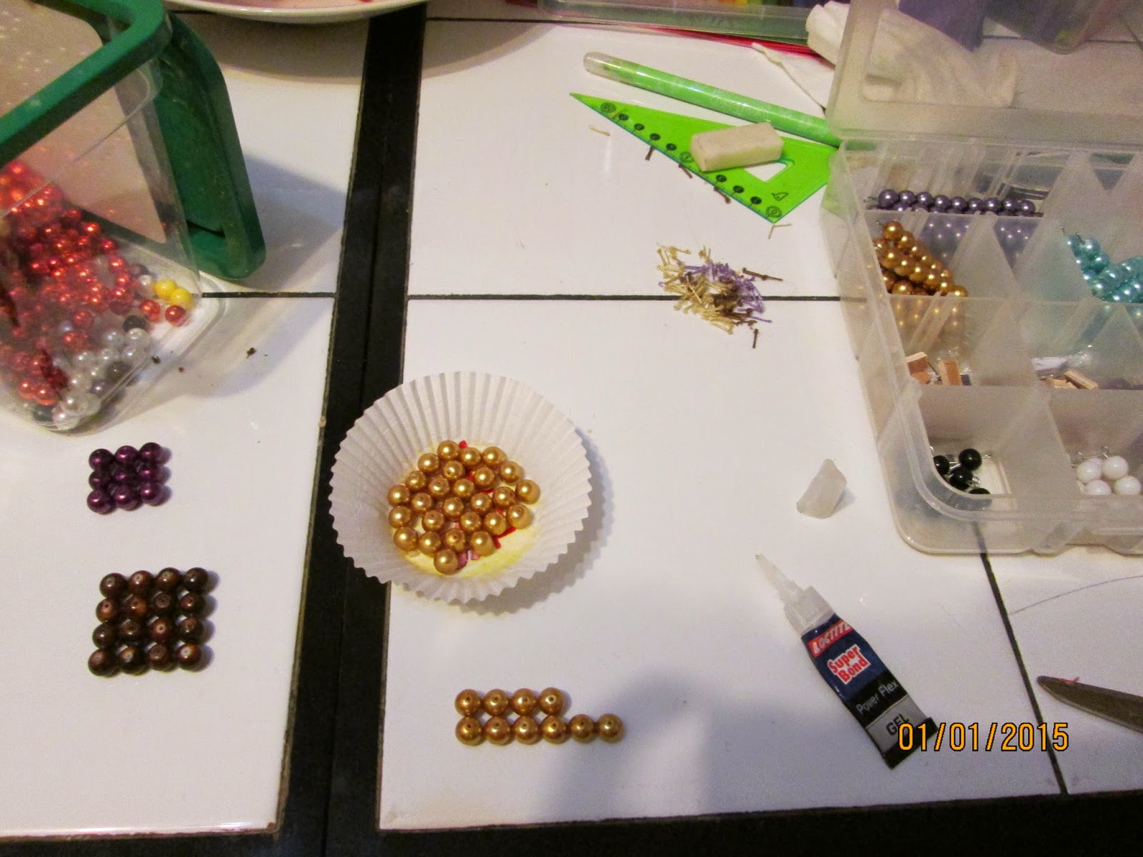 Mi-am dorit sa pot confectiona sirurile de bile in culorile din sistemul Montessori, dar cum au fost greu de gasit, m-am multumit cu niste margele de culori diferite. Am scos bilele de pe ata, apoi le-am adaugat pe sarma pe gaurile deja existente. Capetele sarmei le-am indoit putin in interior, prin gaurile ultimelor bile. Sirurile de bile au fost destul de usor de realizat dar au fost muuulte! Am facut cate 10 din feicare sir si am mai completat pentru activitatile care au urmat.